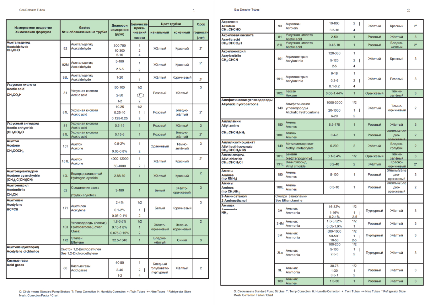 Индикаторные трубки GASTEC представляют собой герметично запаянные стеклянные трубки, заполненные хемосорбентом-индикатором.